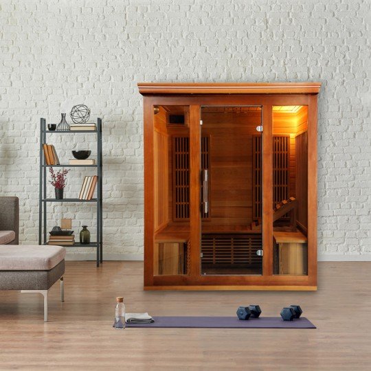 - AROMATIC WARMTH – Simply step into this home sauna and enjoy the aroma and luxury of Canadian red cedar. An excellent thermal insulator, cedar has a lower density and high proportion of air spaces, so it retains heat and resists warping.