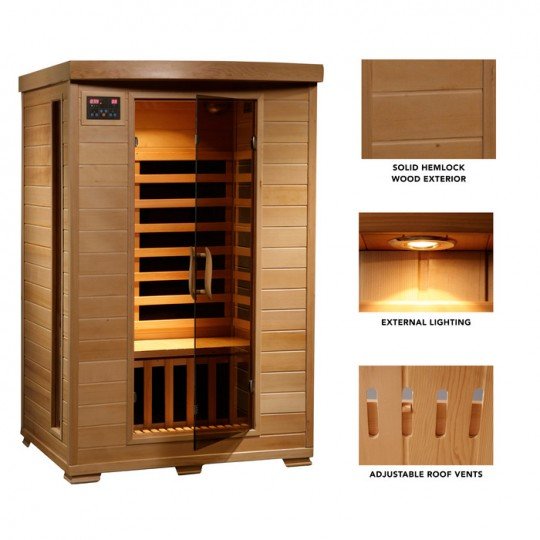 - A RELAXING RETREAT – This gorgeous sauna is rich with soothing features, including chromotherapy lighting, an oxygen ionizer and restorative, infrared heat. It also comes with a built-in sound system with wireless connectivity.