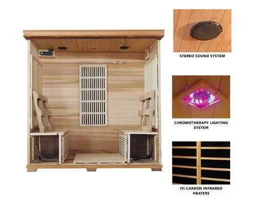Create the ultimate sauna experience in your own home. This Heatwave SA1318 Klondike four-person sauna offers a spacious interior that allows you to relax with ease. Constructed from Canadian red cedar, the Cedar Elite sauna has a beautiful, red tone and a pleasant, natural aroma. Nine, low-EMF, carbon heaters provide heat for up to four people, creating the perfect sanctuary for friends and family members. A full-spectrum, color therapy system and an integrated sound system enhances your at-home spa experience.