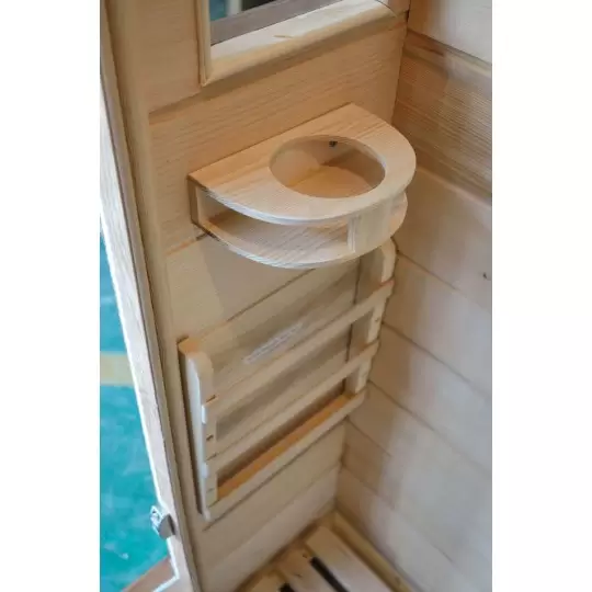 Step into a spacious cabin with extra-deep bench seating, allowing you to fully relax as you’re enveloped in soothing warmth from strategically positioned carbon heaters. An 8-color chromotherapy light enhances the ambiance, while a built-in sound system with wireless connectivity lets you enjoy your favorite music effortlessly. Two ergonomic solid hemlock backrests, a double towel hook, an oxygen ionizer, and two cupholders complete your ultimate at-home spa experience.
