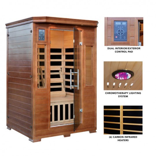 - DRY INDOOR SAUNA – Six infrared carbon heaters are precisely positioned to provide a steady, dry heat. The infrared heaters provide up to 140 degrees of warmth and are easily adjusted with intuitive controls.