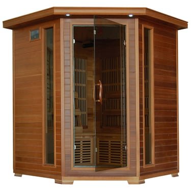 Relax and rejuvenate with friends and family in a calming sanctuary. Constructed from Canadian red cedar, a premium softwood that’s world-renowned for its heat insulating properties, this sauna minimizes power usage and maximizes relaxation. Designed to conveniently fit into a corner, this sauna will complete your at-home spa retreat. Ten, perfectly-positioned, carbon heating panels, surround you in soothing warmth. And its chromotherapy lighting system and integrated sound system enhance your experience.