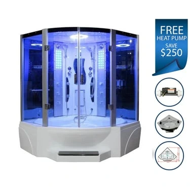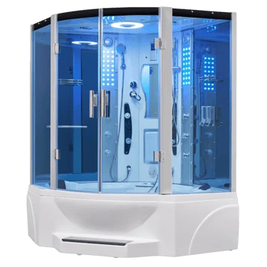 The Mesa 608P combination steam shower with a jetted tub is our top-selling fully-equipped steam shower. The Mesa The Mesa 608P combination steam shower with a jetted tub is our best-selling fully-equipped steam shower. The Mesa 608P is similar to our popular 608A model but features blue-tinted glass and sturdy hinged doors. With 10 acupuncture jets, 10 whirlpool jets, and a 3KW high-efficiency steam engine, the 608P steam bath is designed to significantly elevate your spa experience. Indulge in complete relaxation and tranquility with the many features offered by the Mesa 608P. The Mesa 608P combination steam shower with a jetted tub continues to be our top-selling fully-equipped steam shower. The Mesa 608P resembles our favored 608A model but includes blue-tinted glass and strong hinged doors. It has 10 acupuncture jets, 10 whirlpool jets, and a 3KW high-efficiency steam engine, all aimed at greatly enhancing your spa experience.