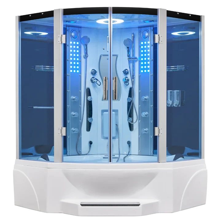 Well-liked 608A model but 608P features blue-tinted glass and heavy-duty hinged doors. With 10 jets, 10 whirlpool jets, and a 3KW high-efficiency steam engine, the 608P steam bath is designed to significantly enhance your spa experience. Treat yourself to complete relaxation and tranquility with the numerous features that the Mesa 608P has available. The Mesa 608P combination steam shower with a jetted tub remains our best-selling fully-equipped steam shower. The Mesa 608P resembles our popular 608A model yet includes blue-tinted glass and robust hinged doors. It boasts 10 acupuncture jets, 10 whirlpool jets, and a 3KW high-efficiency steam engine, aimed at greatly amplifying your spa experience. Pamper yourself in total relaxation and peace with the various features the Mesa 608P provides. The Mesa 608P combination steam shower with a jetted tub is our leading fully-loaded steam shower. This model is similar to our favorite 608A but comes with blue-tinted glass and durable hinged doors. It also incorporates 10 acupuncture jets, 10 whirlpool jets, and a 3KW high-efficiency steam engine, specifically designed to enhance your spa experience. Enjoy a state of complete relaxation and serenity with the many offerings of the Mesa 608P.