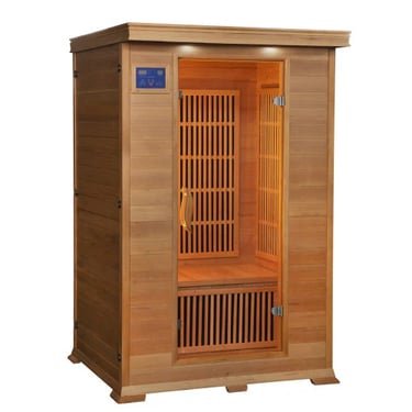The Evansport 2-person indoor infrared sauna provides an affordable way to relieve stress and improve health in the comfort of your own home. Using the latest infrared carbon heating technology, the Evansport provides soothing heat up to 140 degrees. Standard features include interior and exterior keypads, a Bluetooth speaker system, movable ergonomic backrests for maximum comfort, chromotherapy mood lighting, and an advanced air filtration system.
